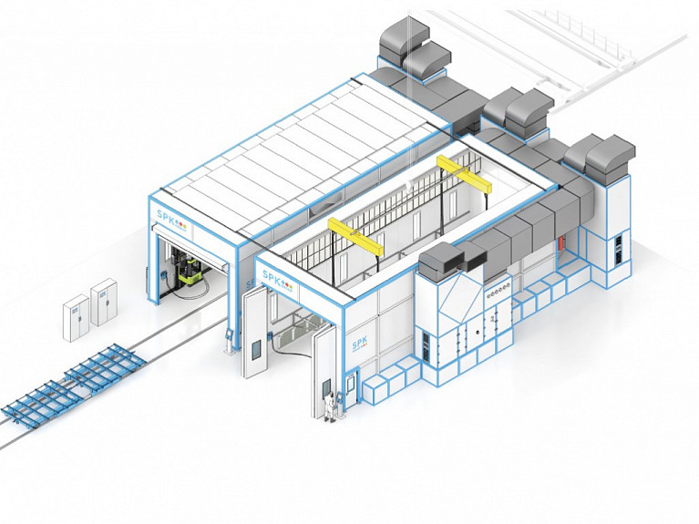 Двухсекционная окрасочно-сушильная камера тупикового типа SPK-SCB-15.12.6.